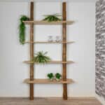 Gibt es eine freie Wand in einem Ihrer Räume und sind Sie auf der Suche nach einem besonderen Regal? Dann sollten Sie sich dieses Baumstamm-Wandregal ansehen. Jedes Regal ist ein handgefertigtes Unikat! Durch die beiden Baumstämme und 130 cm breiten Regalböden ist es stabil und bietet Platz für Deko-Objekte, Bücher und Pflanzen.