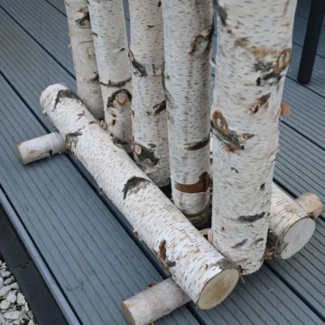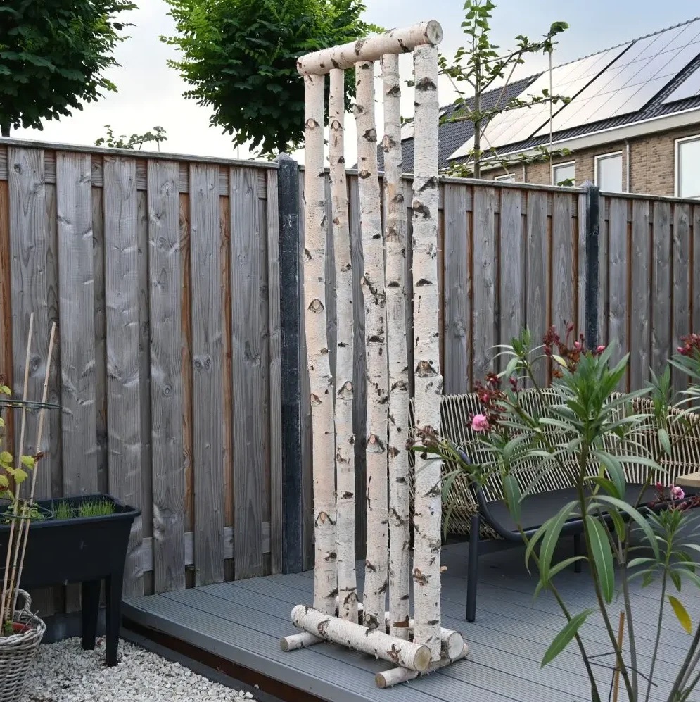 Die helle Farbgebung des Birkenholzes sorgt für eine ruhige, skandinavische Atmosphäre – ideal fürs Wohnzimmer, den Wintergarten oder die Überdachung. Durch die robuste Konstruktion steht der Divider stabil, während die offene Struktur Licht und Luftigkeit bewahrt.