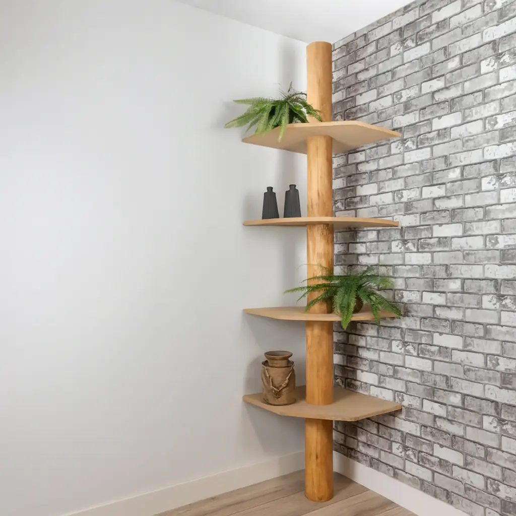 Baumstamm-Eckregal | Einar | Old Natural | 85x60x250