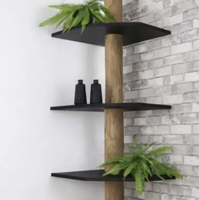 Baumstamm-Eckregal | Javi | Grey/Schwarz | 85x60x250