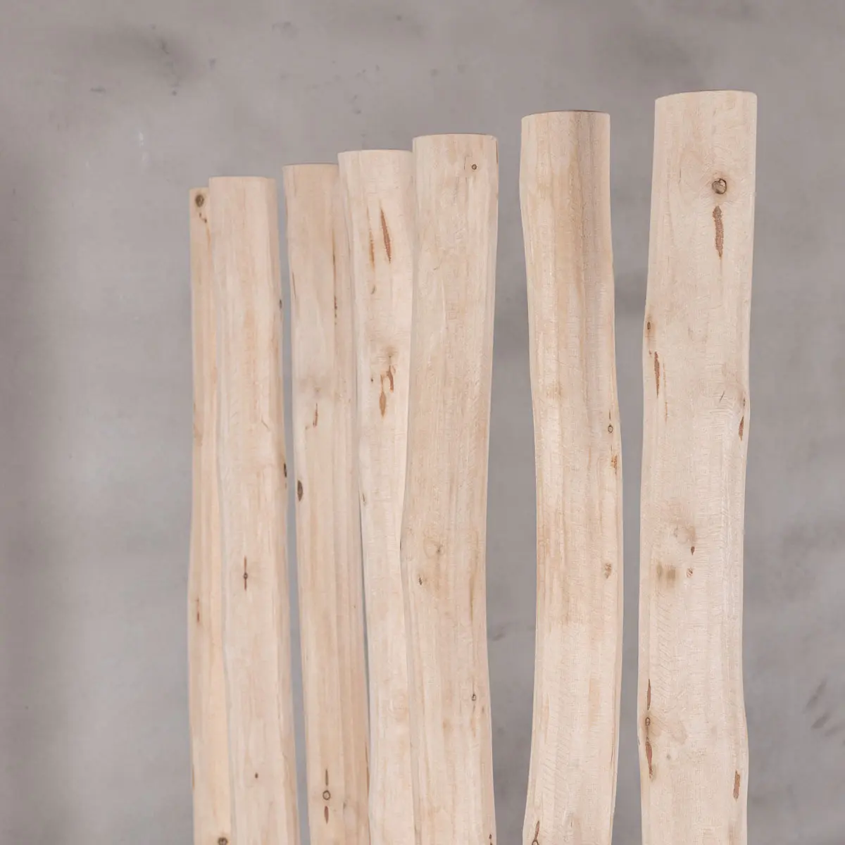 Der Raumteiler Esper verbindet das natürliche Aussehen von entrindeten Birkenstämmen mit der klaren Optik eines naturbelassenen Schranks. Dank der stabilen Schrankkonstruktion und den praktischen Rollen lässt sich dieser Raumteiler leicht verschieben, sodass du deine Einrichtung schnell und flexibel gestalten kannst.