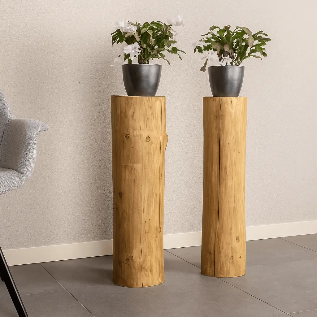 Diese Säule ist in verschiedenen Größen erhältlich und eignet sich super als Beistelltisch, Pflanzensäule oder Dekoelement in deinem Zuhause, deinem Laden oder deinem Restaurant. Jede Säule ist einzigartig in ihrer Maserung und Farbgebung.