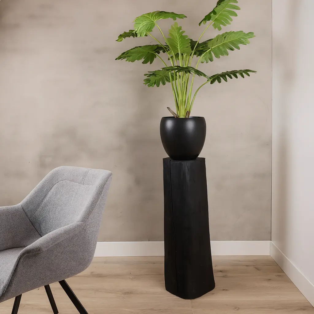 Die Baumstamm-Säule Vigo Schwarz ist ein echter Hingucker in jedem Raum. Das Holz ist entrindet und mit einem schwarzen Öl behandelt, sodass die Holzmaserung dezent sichtbar bleibt, aber das Design klar und modern wirkt. Diese Säule bringt ein grafisches und kraftvolles Element in dein Interieur und passt super zu hellen und industriellen Stilen.