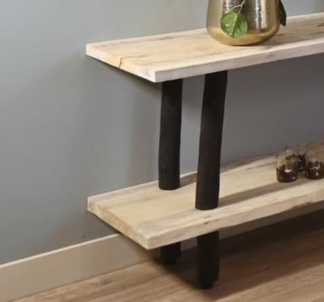 Das offene Design bietet zwei großzügige Ebenen für deinen Fernseher, deine Soundbar, Konsolen und Accessoires. Dank der offenen Rückseite kannst du Kabel einfach verstauen. Jedes Möbelstück wird von Hand gefertigt, sodass kein Exemplar dem anderen gleicht – genau das, was du suchst, wenn du Charakter statt Standardmöbel suchst.