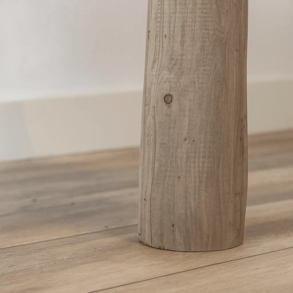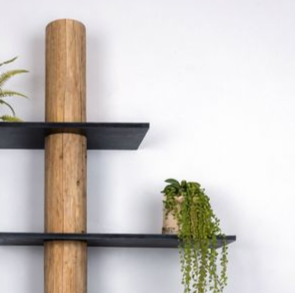 Der Wandschrank Javi bringt die Wärme von echtem Holz mit dem coolen Look von schwarzen Regalböden zusammen. Ein echter Baumstamm bildet das vertikale Rückgrat und sieht mit einer grauen Ölbeize echt gemütlich aus; seine organische Form passt super zu den geradlinigen Regalböden, die um den Stamm herum zu schweben scheinen. Die Regalböden sind versetzt angeordnet, was für einen verspielten, räumlichen Rhythmus sorgt, und bieten genug Platz für Bücher, Pflanzen und Deko.