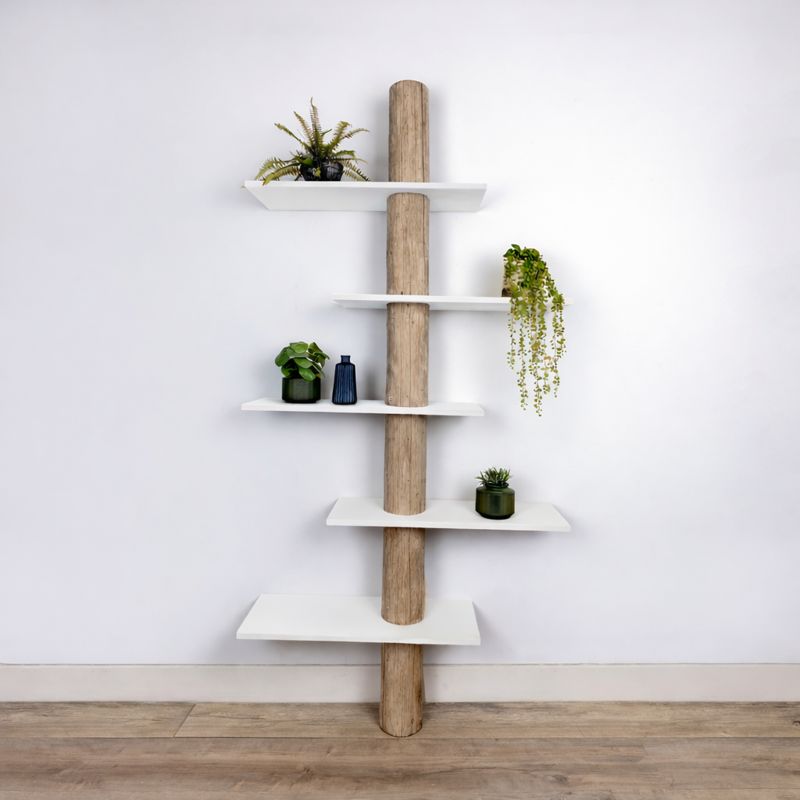 Baumstamm-Wandregal mit versetzte Regalböden | Javi | Grey/Weiß | 110x30x250