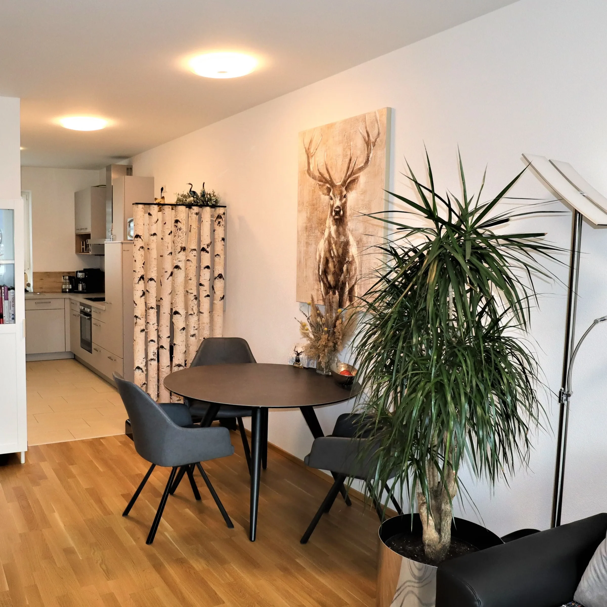 Der Raumteiler Thor bringt den robusten Charme von echten Birkenstämmen mit Rinde und dem modernen Look eines schwarzen Fußes zusammen. Das macht ihn zu einem perfekten Blickfang für alle, die einen natürlichen Look mit einem coolen Akzent mögen.