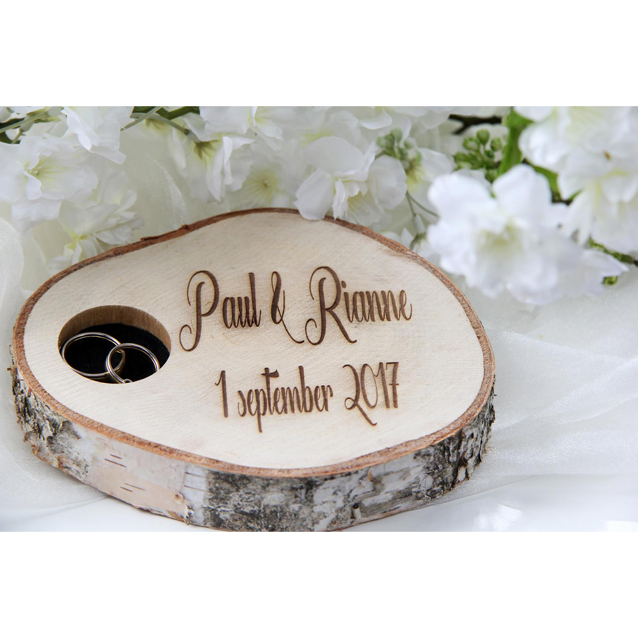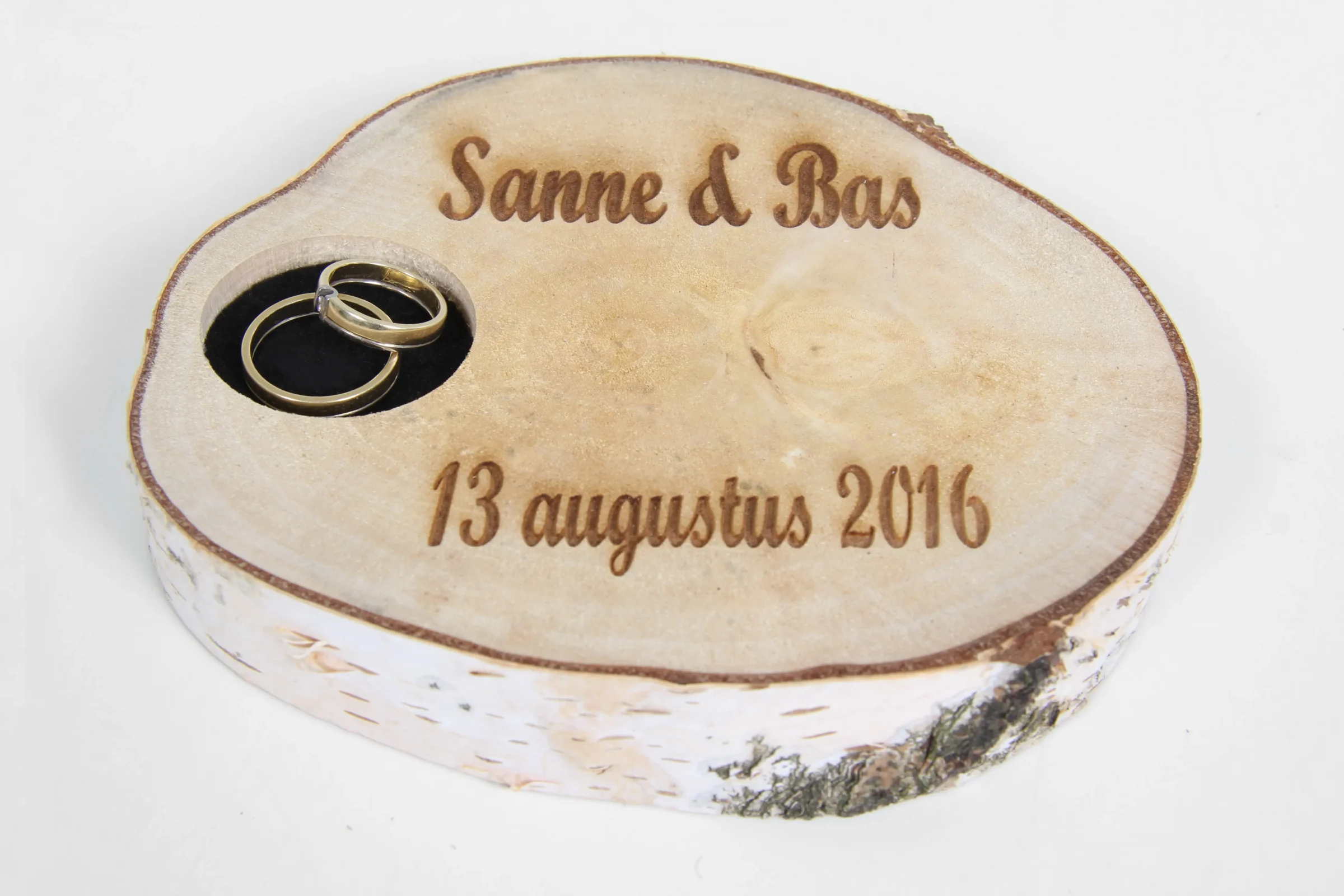 Die Ringscheibe kann mit einem Text, Namen, Datum und/oder einem Symbol deiner Wahl personalisiert werden. Die Gravur wird sorgfältig angebracht und verleiht ihr einen warmen, natürlichen Look, der perfekt zu einem ländlichen, romantischen oder böhmischen Ambiente passt.