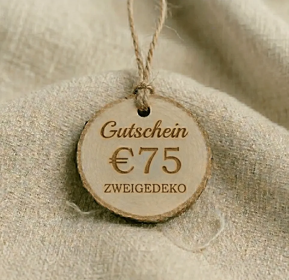 Du erhältst eine wunderschöne Holzscheibe (Birkenholz) mit Gravur, versehen mit einem Loch und einer coolen Juteschnur.