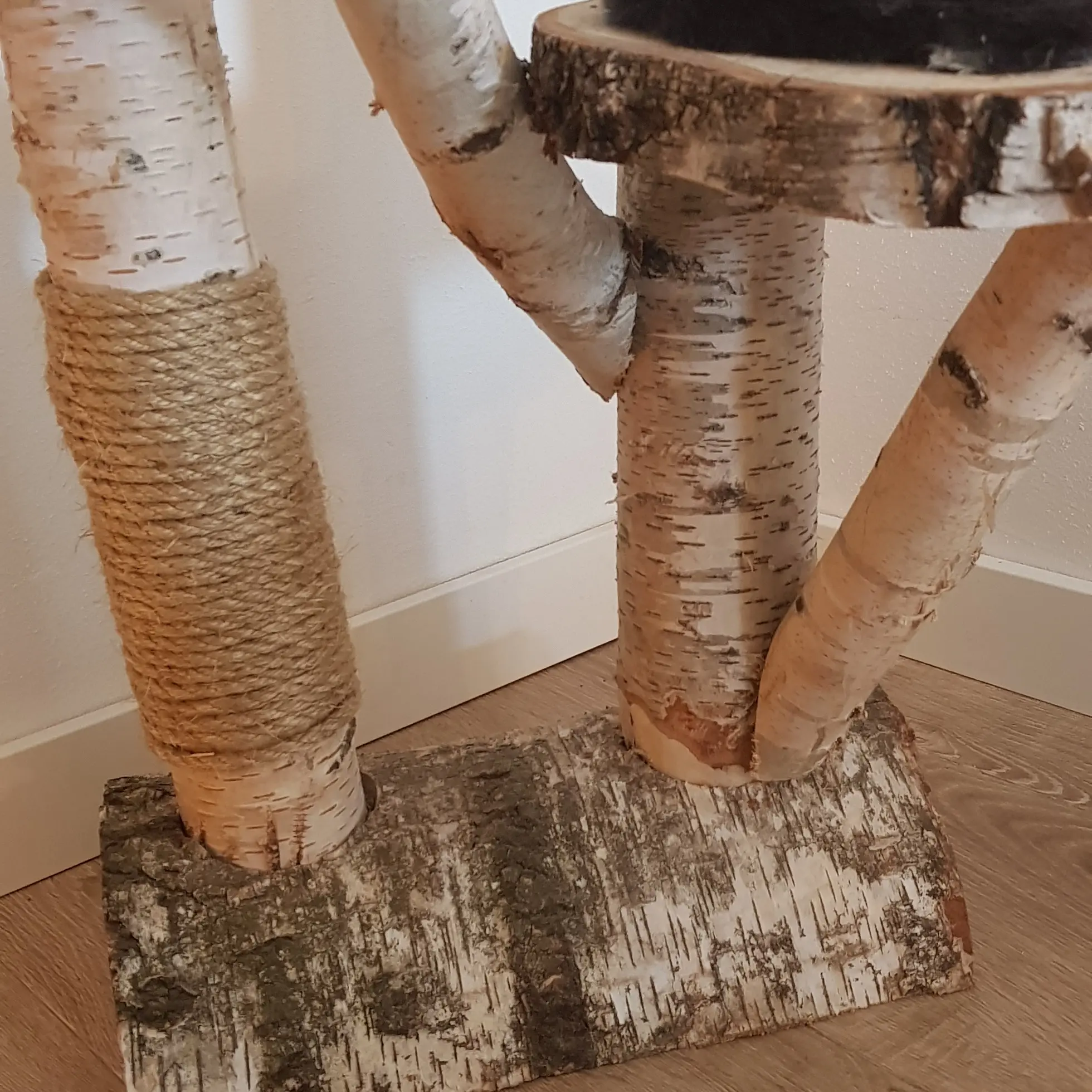 Der Birkenkratzbaum Mimi ist ein einzigartiger und natürlicher Kratzbaum aus robusten Birkenstämmen. Dank seiner robusten Konstruktion und den verschiedenen Plattformen bietet dieser Kratzbaum deiner Katze viele Möglichkeiten zum Spielen, Klettern, Ausruhen und Ausschau halten.