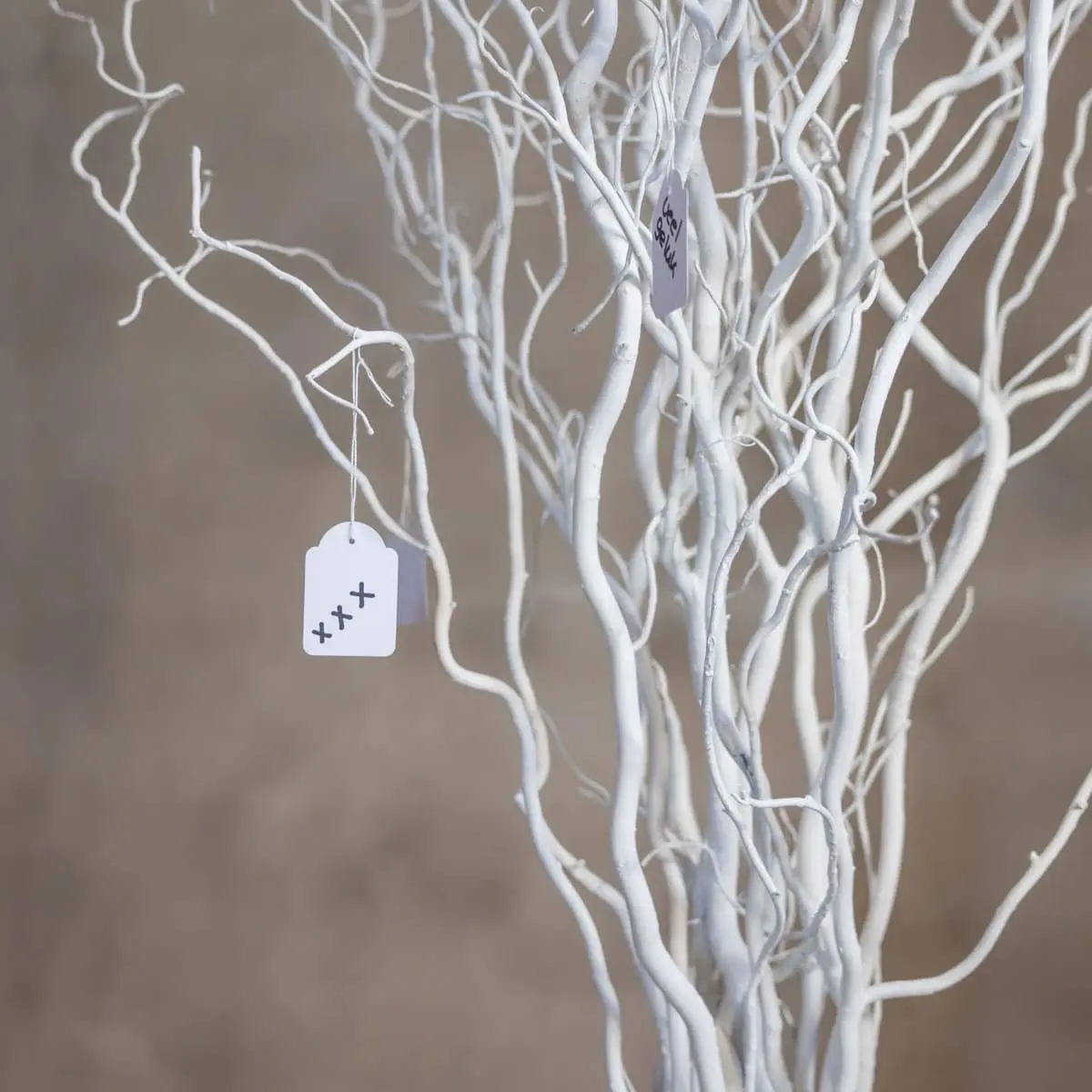 Der weiße, gewundene Weiden-Wunschbaum ist ein eleganter und aussagekräftiger Blickfang für jede Einrichtung oder einen besonderen Moment. Der Baum ist aus echten, gewundenen Weidenzweigen handgefertigt und in einem sanften, matten Weiß gestrichen, das die natürlichen Formen des Holzes wunderbar zur Geltung bringt.