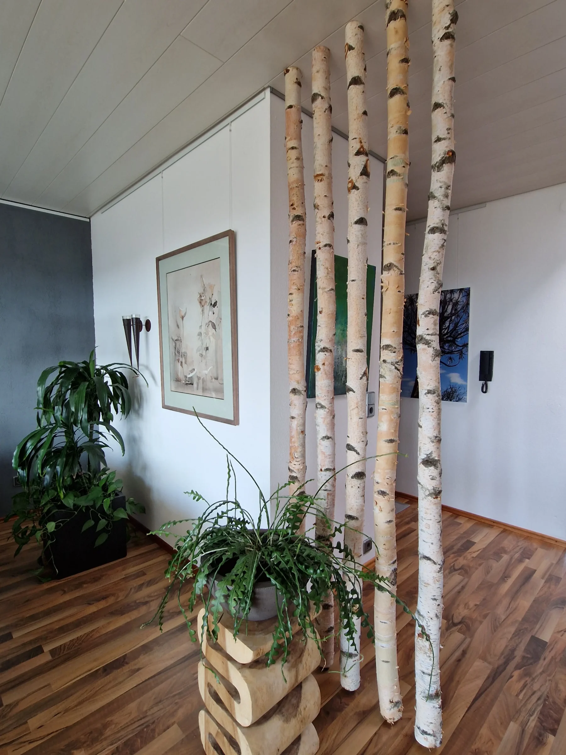Außerdem sehen die Stämme auch als Einzelelement in einem Raum toll aus – zum Beispiel als einzelner Blickfang in einer Ecke, neben einem Schrank oder im Eingangsbereich.