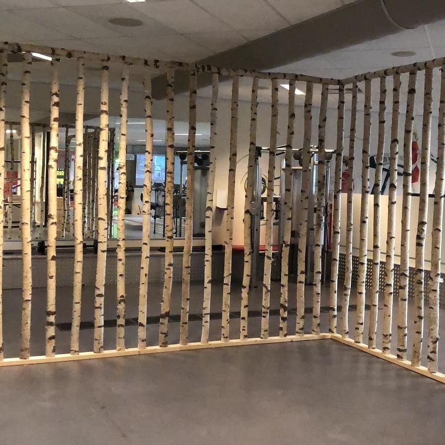 Bring mit einem maßgeschneiderten Raumteiler aus natürlichen Baumstämmen Atmosphäre und Struktur in dein Zuhause.