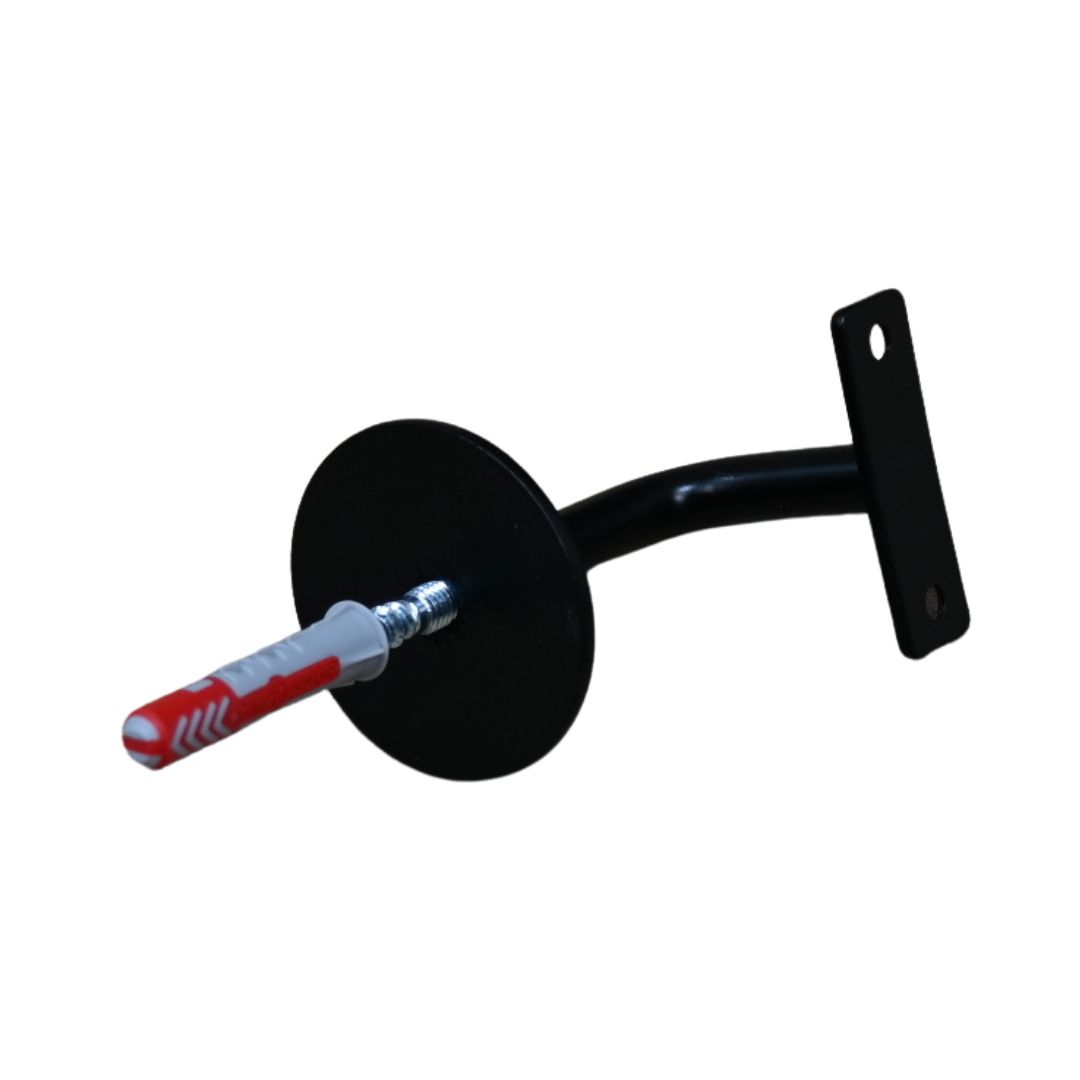 Schwarzer Metall-Treppengeländerhalter für die verdeckte Montage an der Wand, passt für runde Treppengeländer.