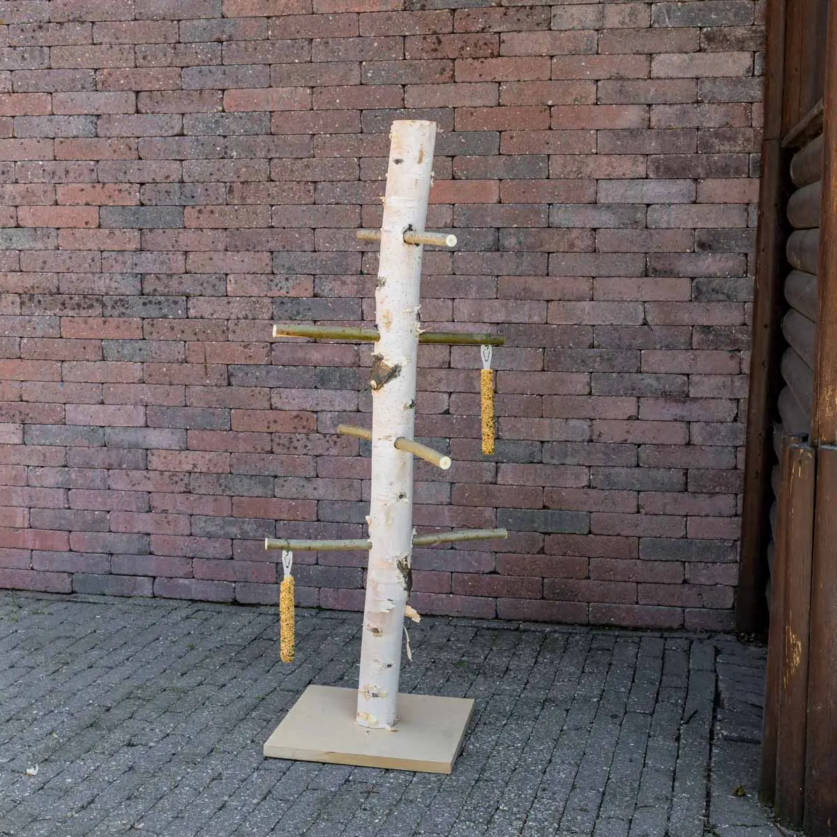 Das Holz ist unbehandelt und völlig sicher für Vögel. Dadurch eignet sich der Baum nicht nur zum Aufstellen im Garten oder auf der Terrasse, sondern auch als Dekorationselement in Innenräumen. Füge einfach Fettkugeln, Sprühhirse oder andere Leckereien hinzu und genieße die Aktivität der Vögel rund um diesen natürlichen Futterplatz.