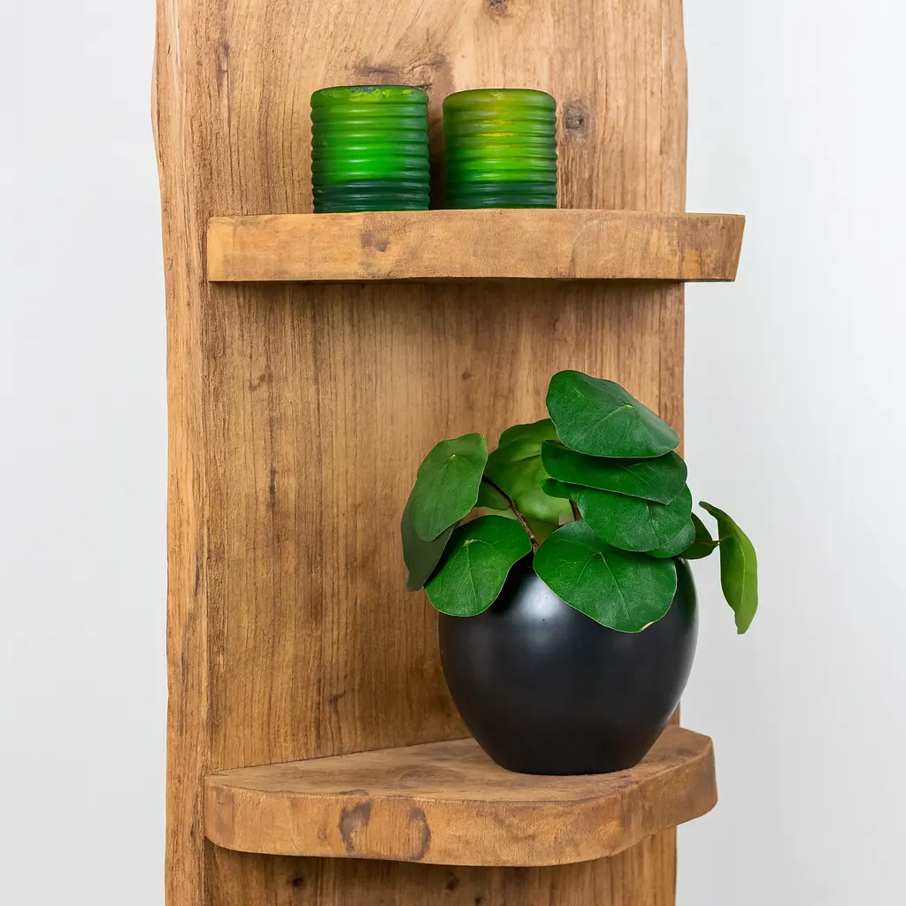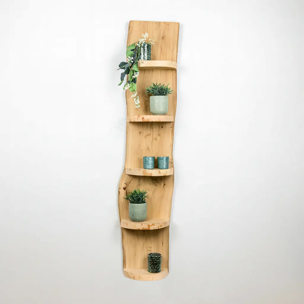 Dank seiner kompakten Größe und der natürlichen Form des Holzes passt dieses Baumstammregal sowohl in ein modernes als auch in ein ländliches Interieur. Es lässt sich einfach an der Wand befestigen und eignet sich ideal als dekorativer Akzent.