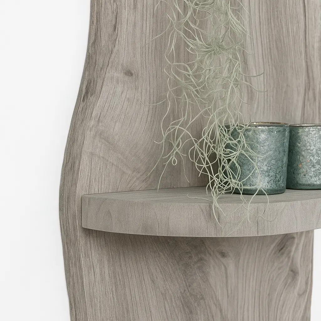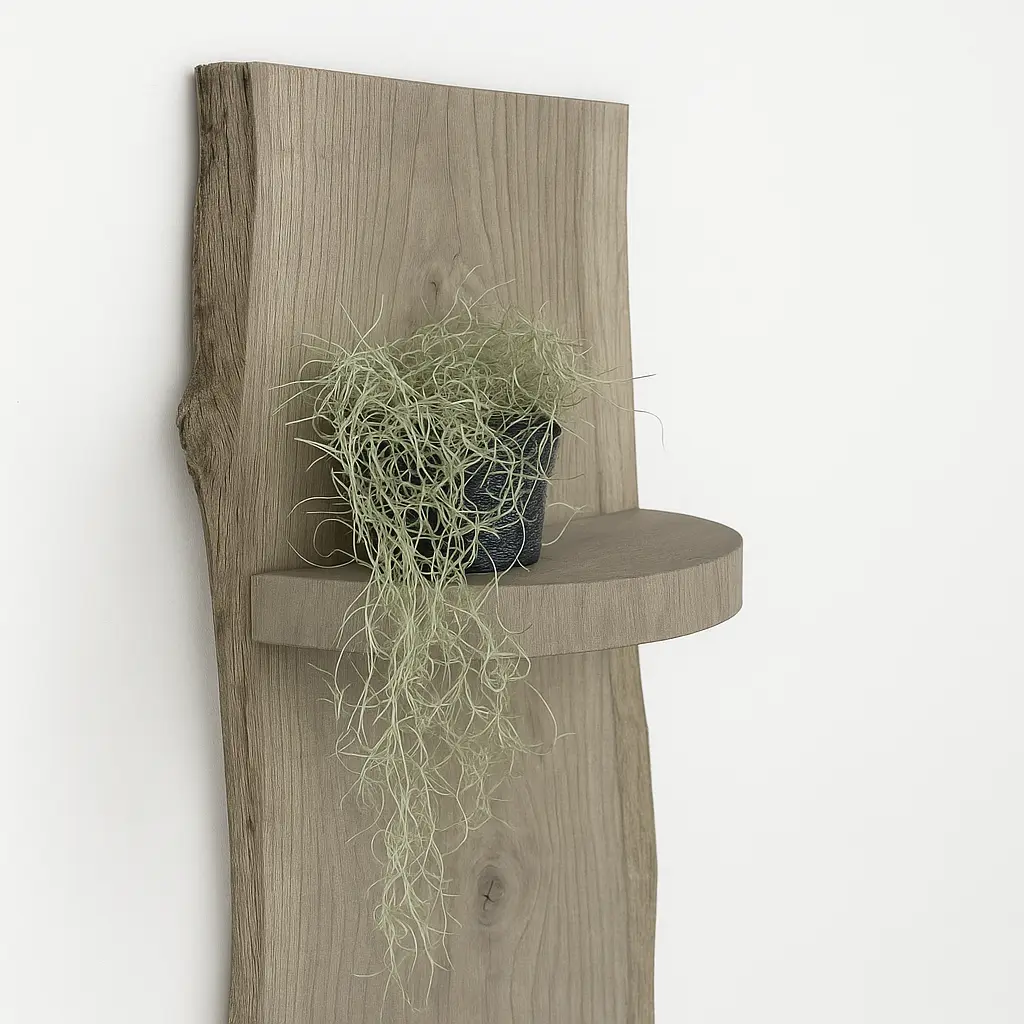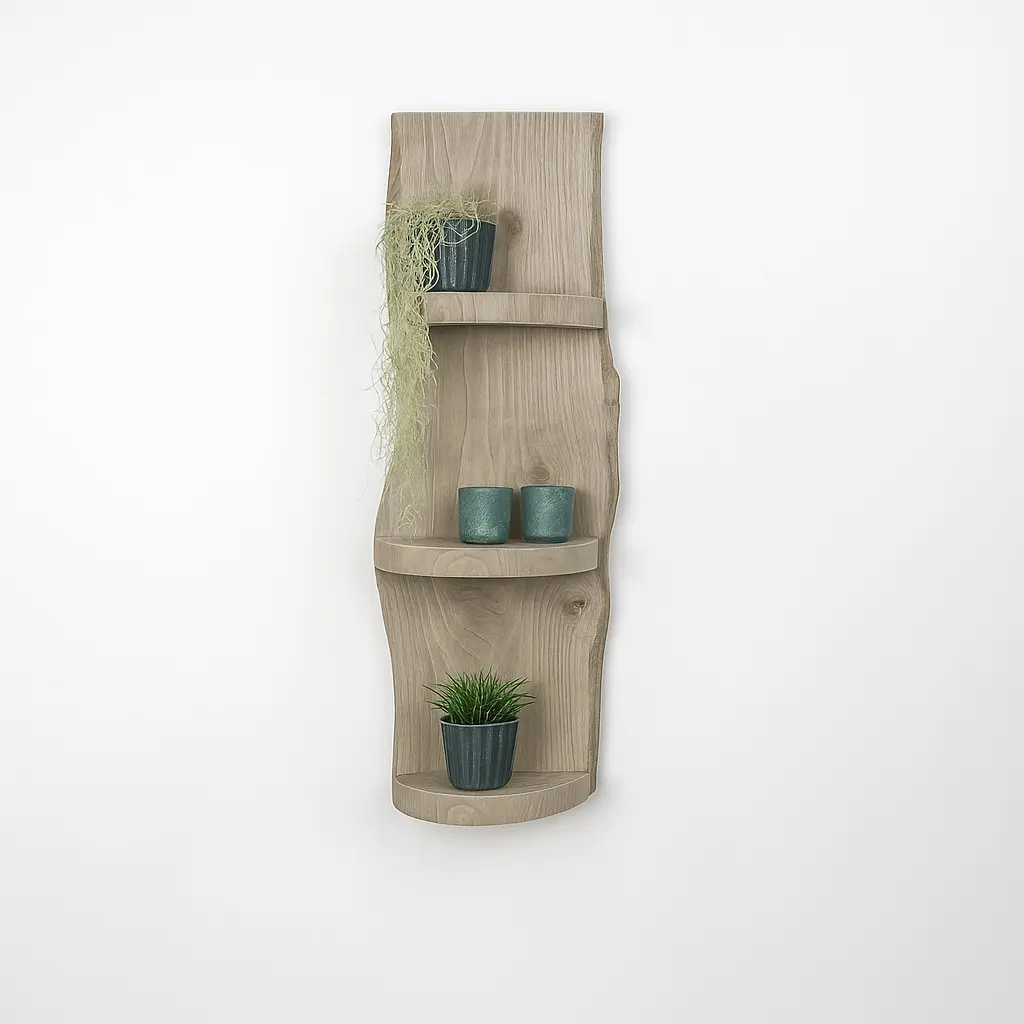 Dank seiner kompakten Größe und der natürlichen Form des Holzes passt dieses Baumstammregal sowohl in ein modernes als auch in ein ländliches Interieur. Es lässt sich einfach an der Wand befestigen und ist ideal als dekorativer Akzent.