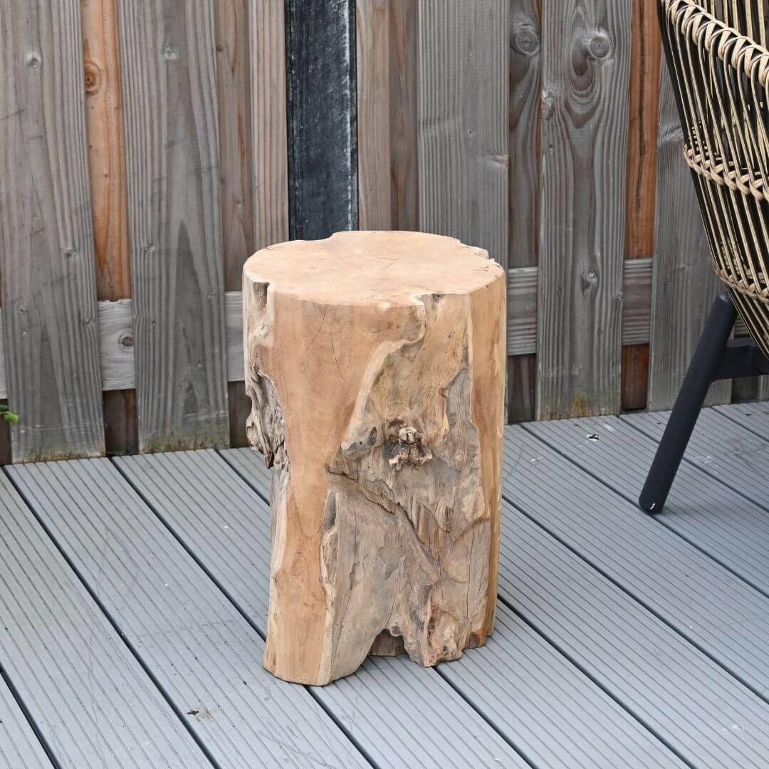 Die Baumstammsäule ist ein einzigartiges Möbelstück, handgefertigt aus massivem Teakholz. Jede Säule entsteht aus einem echten Baumstamm, sodass natürliche Formen, Maserungen und Astlöcher voll zur Geltung kommen – kein Exemplar gleicht dem anderen. Ein echtes Stück Natur für Ihr Zuhause.