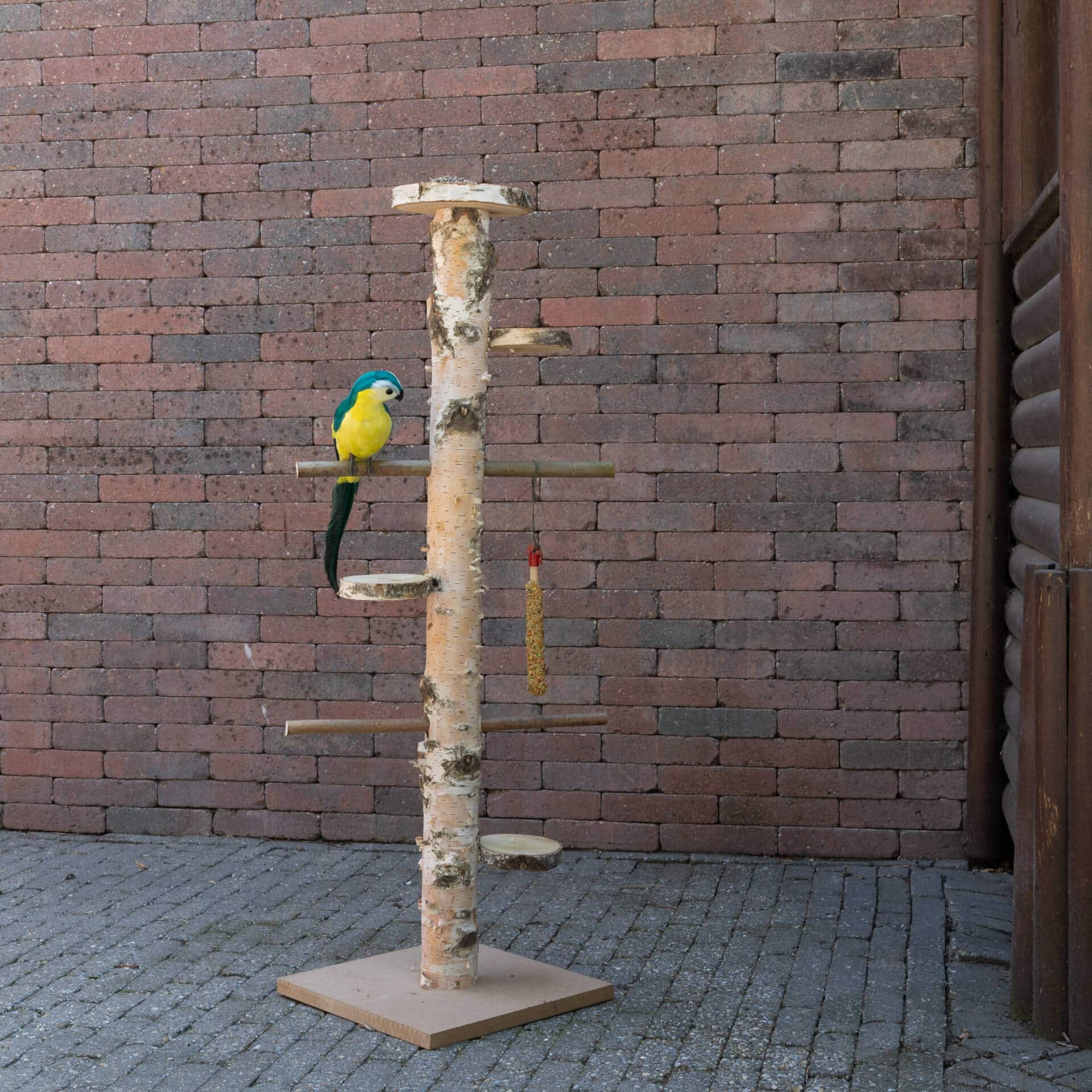 Der Vogelkletterbaum ist aus einem Birkenstamm gefertigt. Das Holz ist unbehandelt und daher ungefährlich für Ihre Vögel. Der Baum ist mit mehreren Sitzplätzen aus Birkenholzscheiben und Weidenästen versehen, sodass sich mehrere Vögel auf ihm vergnügen können. Stellen Sie ihn in Ihre Voliere oder Ihr Wohnzimmer und Ihr Vogel hat seinen eigenen Platz, an dem er klettern und spielen kann.  Auf die oberste Holzscheibe können Sie Vogelfutter streuen, Ihr Vogel kann hier auch sitzen. Dieser Baum ist auch für größere Vögel geeignet.