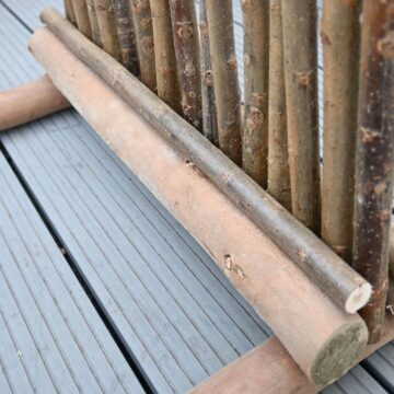 Da der Raumteiler aus unbehandeltem Weidenholz gefertigt ist, ist er perfekt für den Außen- und überdachten Bereich geeignet. Mit der Zeit ergraut das Holz auf natürliche Weise, was seinen charmanten, rustikalen Ausdruck noch unterstreicht.